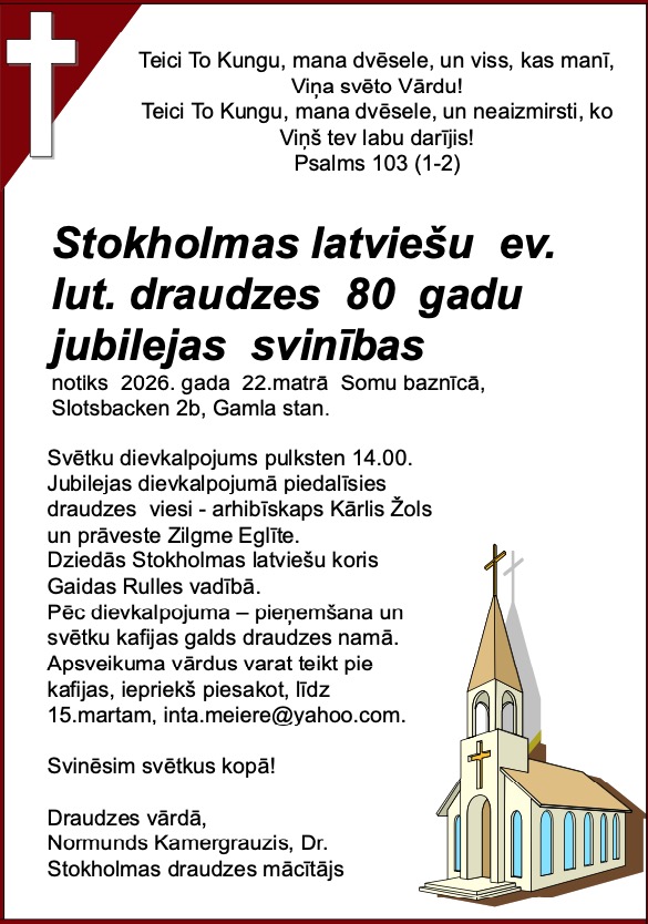 Stokholmas ev.lut.draudzes un ekumēniskie dievkalpojumi 2025.gada pirmajā pusgadā